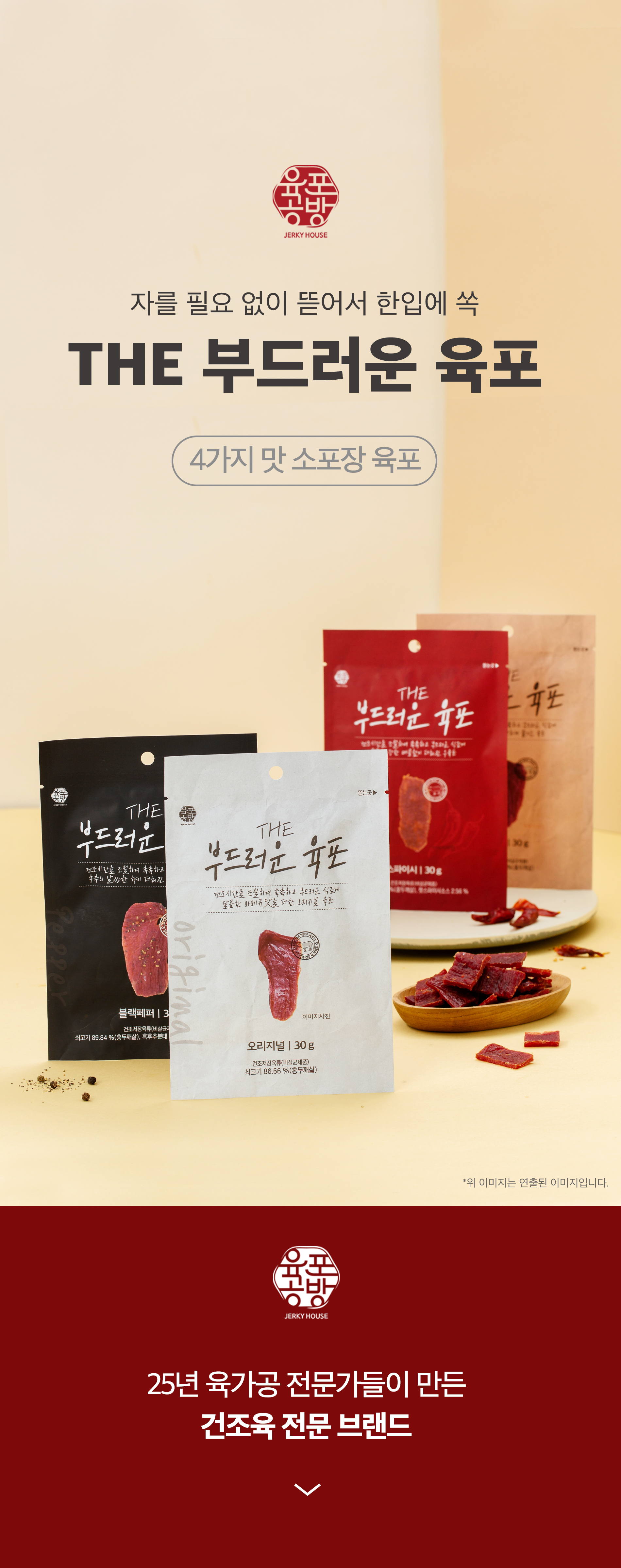 부드러운 식감의 육포에 달콤한 바베큐맛을 입힌 남녀노소 좋아하는 오리지널 육포